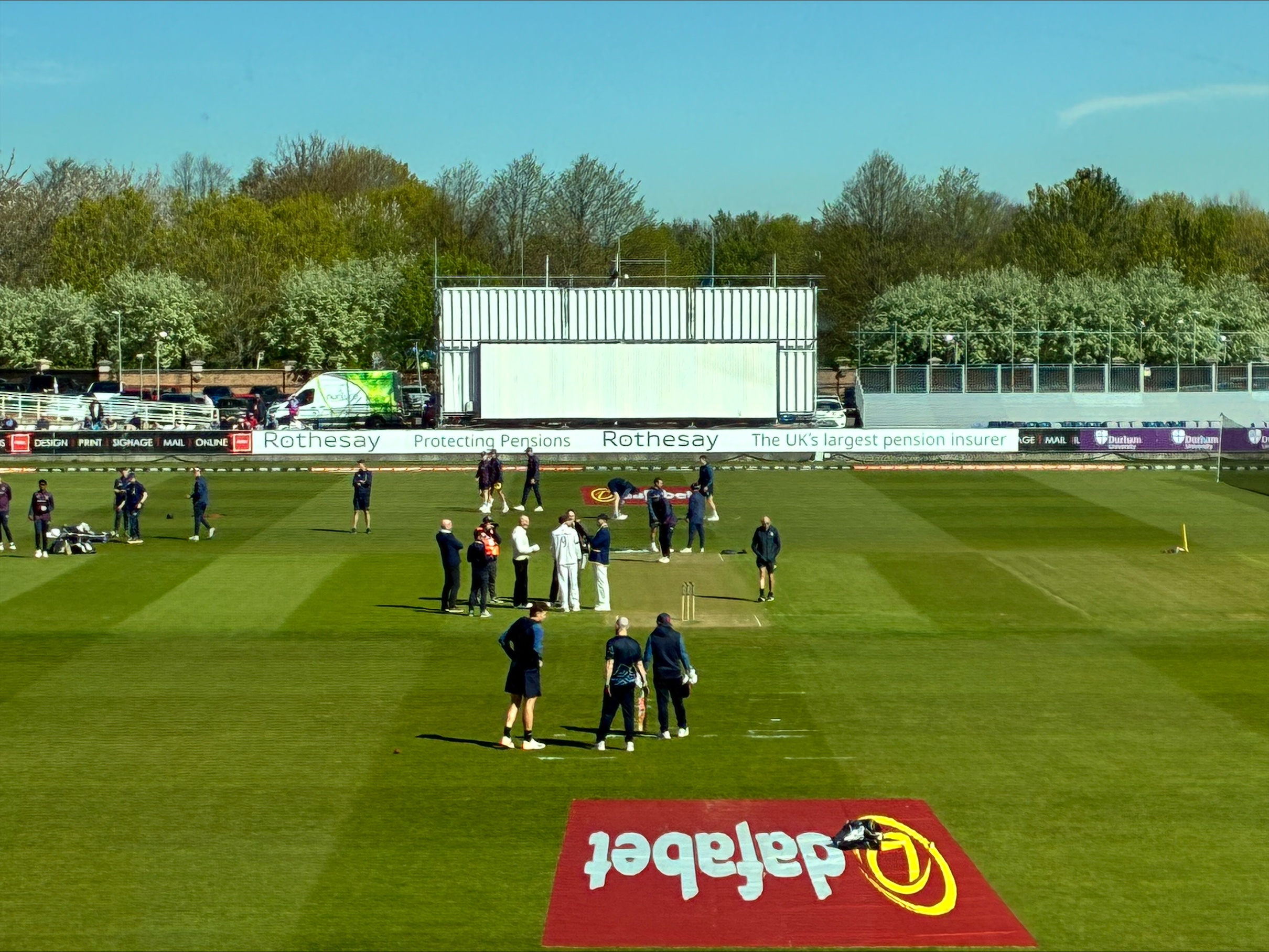9:50 Arrived at a sunny Banks Homes Riverside for Durham vs Lancashire in the @CountyChamp